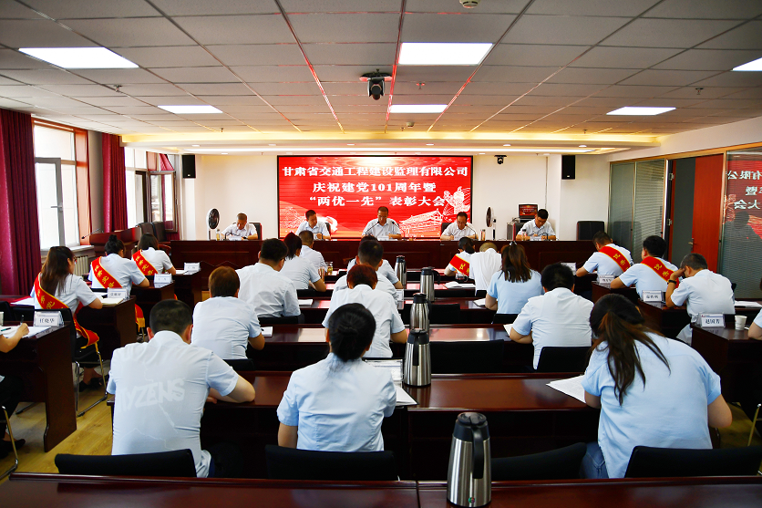 6月30日,甘肅省交通工程建設(shè)監(jiān)理有限責(zé)任公司召開慶祝建黨101周年暨“兩優(yōu)一先”表彰大會。交通監(jiān)理公司領(lǐng)導(dǎo)班子成員,機(jī)關(guān)及子公司全體黨員、中層干部,受表彰的先進(jìn)集體和優(yōu)秀個人代表共計30余人在主會場參加表彰大會,各項(xiàng)目機(jī)構(gòu)在分會場參會。會議由交通監(jiān)理公司黨委副書記、總經(jīng)理丁峰主持。