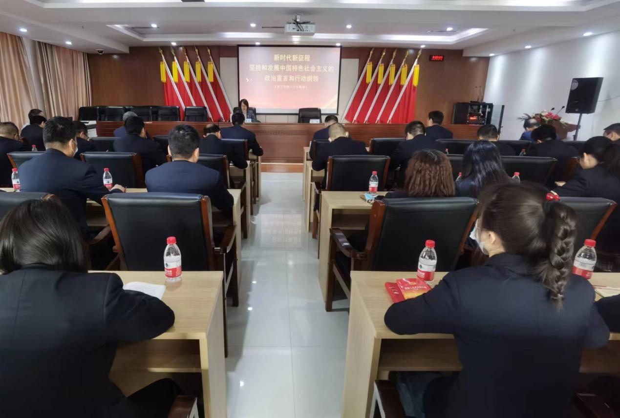 王春燕結(jié)合自身學(xué)習(xí)體會,以《新時代 新征程 堅持和發(fā)展中國特色社會主義的政治宣言和行動綱領(lǐng)》為題,從戰(zhàn)略定位、大會主題、實踐基礎(chǔ)、理論指導(dǎo)、基本路徑、根本保證、團結(jié)奮斗、凝心聚力等八個方面,詳細闡述了對黨的二十大報告的理解認識。