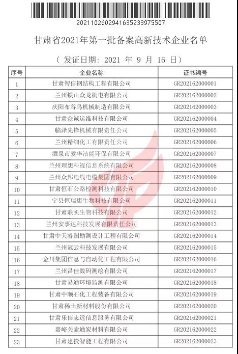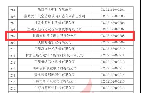 甘肅省水利水電勘測設(shè)計研究院有限責(zé)任公司中標甘肅省引洮供水二期配套城鄉(xiāng)供水信息化專項工程方案、招標設(shè)計及施工圖設(shè)計項目;平?jīng)鍪谐缧趴h棗林溝水庫工程;萬州區(qū)魚背山水庫大壩安全評估報告編制;協(xié)合拉引水樞紐、秋格爾引水樞紐、英爾引水樞紐安全評價項目。中標蘭州中川機場三期擴建供油工程項目機坪航站區(qū)工程勘察。甘肅省建設(shè)監(jiān)理有限責(zé)任公司中標省政府為民實事保障性租賃住房項目監(jiān)理。甘肅省建設(shè)監(jiān)理有限責(zé)任公司根據(jù)《高新技術(shù)企業(yè)認定管理辦法》和《高新技術(shù)企業(yè)認定管理工作指引》有關(guān)規(guī)定,全國高新技術(shù)企業(yè)認定管理工作領(lǐng)導(dǎo)小組辦公室于10月26日正式公布了甘肅省2021年第一批備案的294家高新技術(shù)企業(yè)名單,建設(shè)監(jiān)理公司榜上有名,被評定為“高新技術(shù)企業(yè)”。
