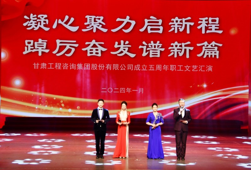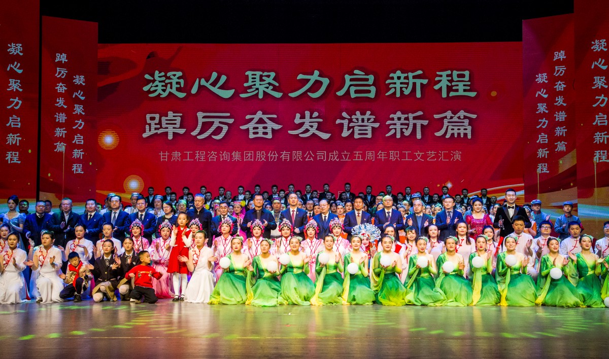 風(fēng)華正茂五年載,逐夢星辰向未來。1月8日,甘肅工程咨詢集團成立五周年“凝心聚力啟新程 踔厲奮發(fā)譜新篇”職工文藝匯演在黃河大劇院隆重舉行。甘肅電氣裝備集團有限公司黨委書記、董事長劉萬祥,甘肅藥業(yè)投資集團有限公司黨委書記、董事長周榮,甘肅省水務(wù)投資集團有限公司黨委書記、董事長李建軍,甘肅科技投資集團有限公司黨委委員、監(jiān)事會主席肖建勝,國泰君安證券甘肅分公司副總經(jīng)理廖光蔚;集團公司原黨委書記、董事長宋忠慶,原黨委委員、副總經(jīng)理梁建平、喬禎林;集團公司黨委書記、董事長馬明,黨委副書記、總經(jīng)理張佩峰,黨委委員、監(jiān)事會主席焦軍毅及其他領(lǐng)導(dǎo)班子全體成員一同觀看了演出。