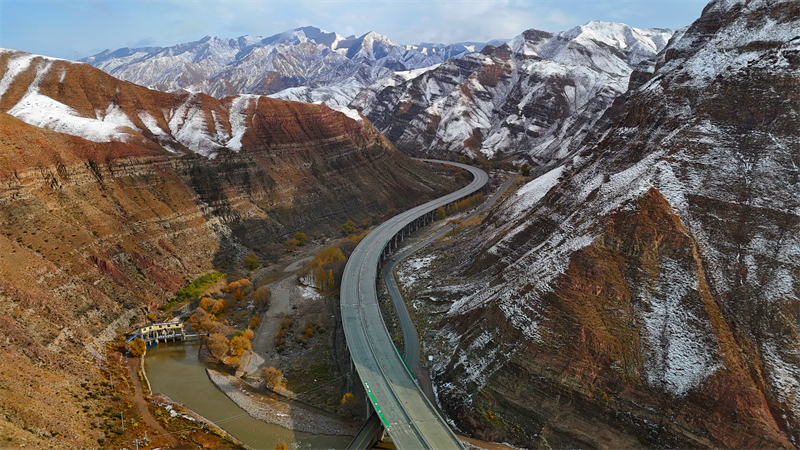 冬日的西營河12號(hào)特大橋宛如一條銀龍,蜿蜒于銀裝素裹的山巒之中。路,走向更遠(yuǎn)的遠(yuǎn)方。
