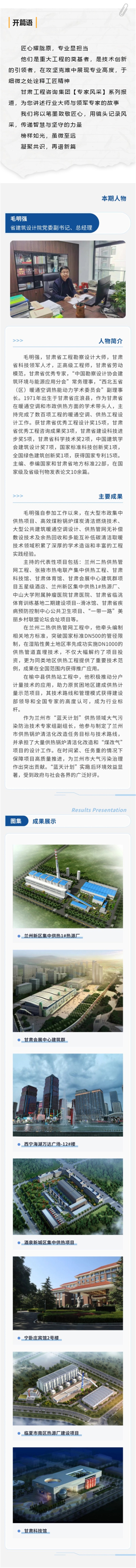 《專家風采》專題報道① | 甘肅省工程勘察設計大師毛明強:深耕熱能工程,引領(lǐng)綠色供熱,以創(chuàng)新技術(shù)守護碧水藍天
