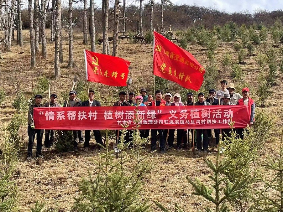 為積極響應習近平總書記“全社會都做生態(tài)文明建設的實踐者、推動者,讓祖國天更藍、山更綠、水更清、生態(tài)環(huán)境更美好”的號召,以打造“五無甘南”,創(chuàng)建“十有家園”為目標,加快推進鄉(xiāng)村振興戰(zhàn)略實施,共建生態(tài)宜居宜業(yè)的美麗鄉(xiāng)村,近日,甘肅省交通工程建設監(jiān)理有限公司駐臨潭縣洮濱鎮(zhèn)馬旦溝村幫扶工作隊積極發(fā)揮自身職能,協(xié)同包村干部、村“兩委”成員、駐村黨員、義務志愿者及群眾代表等開展義務植樹活動。