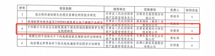 近期,省委組織部印發(fā)了《關(guān)于印發(fā)2023年度省級重點人才項目和隴原青年創(chuàng)新創(chuàng)業(yè)人才(團(tuán)隊)項目入選名單的通知》(甘組通字〔2023〕20號),甘肅工程咨詢集團(tuán)省建筑設(shè)計院張雅慧申報的《鄉(xiāng)村振興與社會生態(tài)韌性視角下西北傳統(tǒng)村落的保護(hù)與再生利用研究》入選個人項目名單,獲得6萬元經(jīng)費資助。