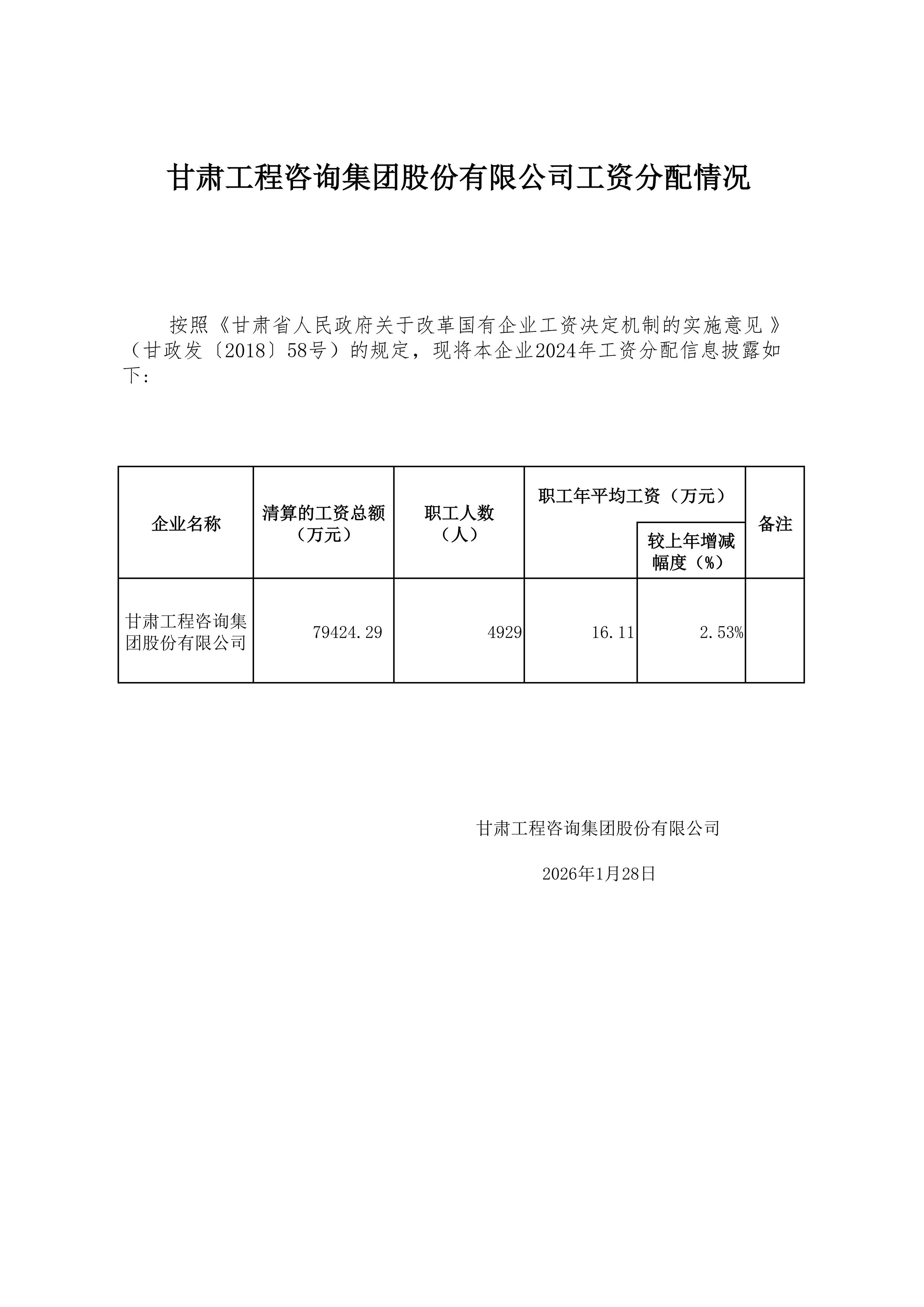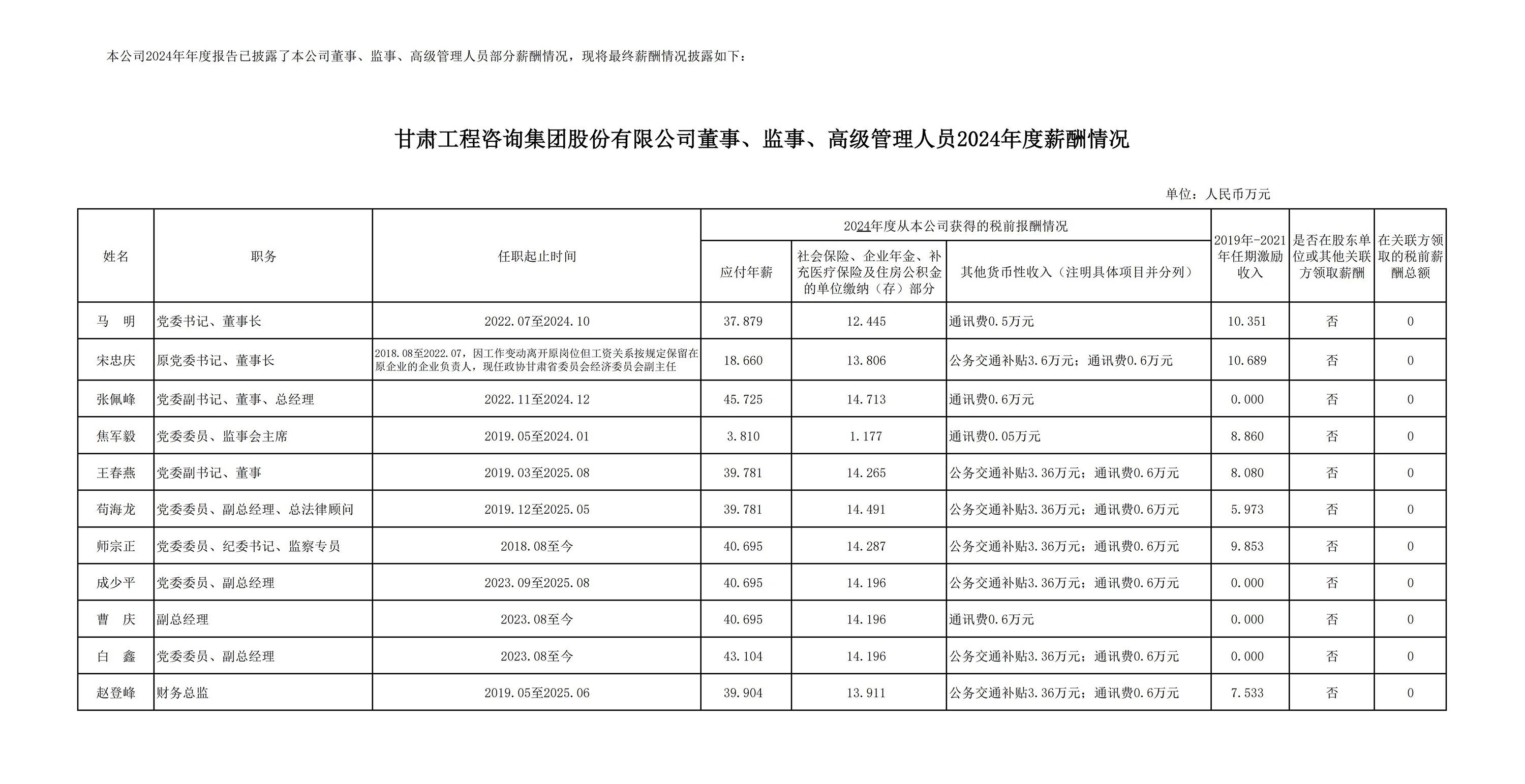 甘肅工程咨詢集團(tuán)股份有限公司董事、監(jiān)事、高級管理人員2024年度薪酬情況及甘肅工程咨詢集團(tuán)股份有限公司工資分配情況