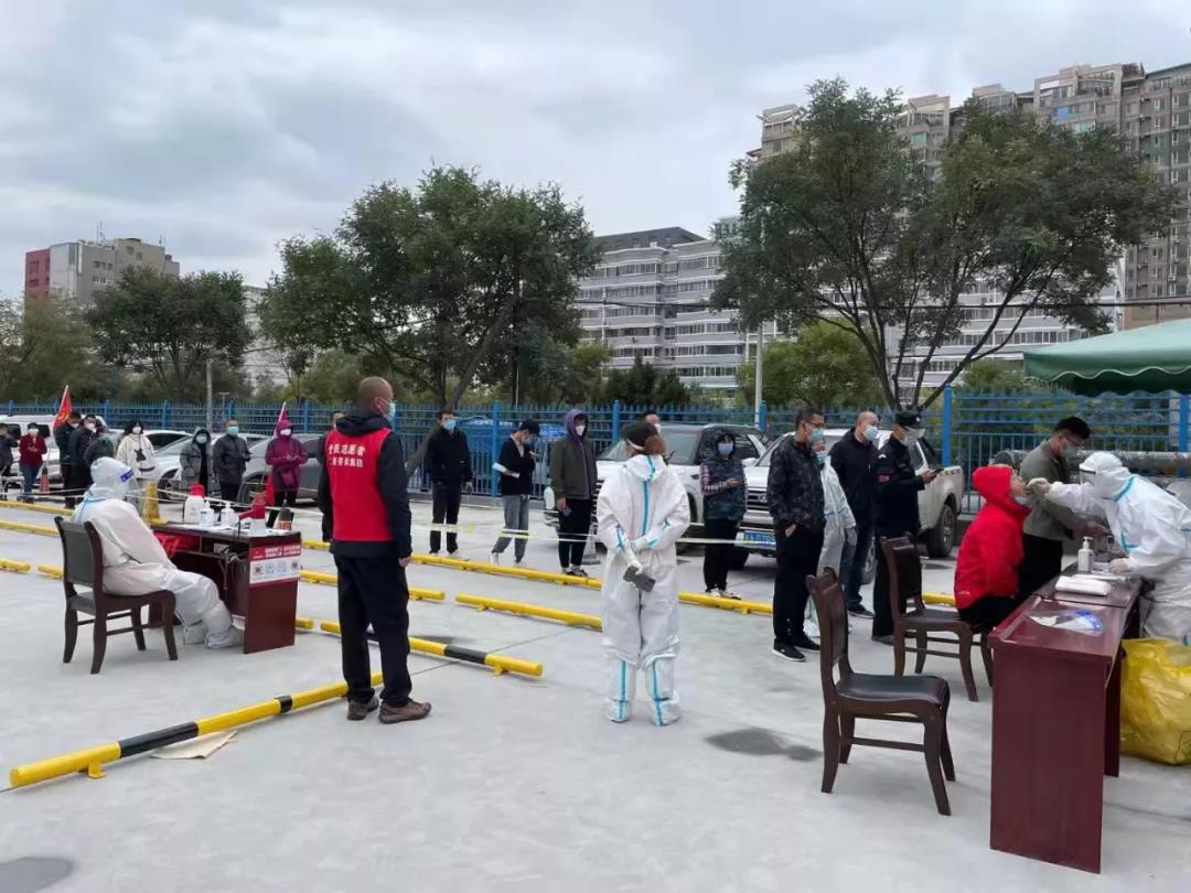 “您好”“請(qǐng)不要擁擠”“提前打開健康碼”……這是土木工程院的后勤管理部工作人員在有序指揮前來進(jìn)行核酸檢測的職工和家屬。