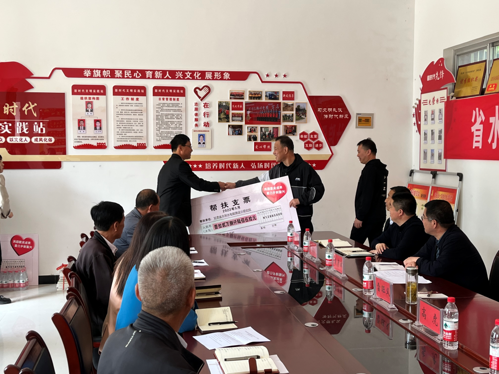 座談會上,莊頭、廖坳兩村黨支部書記就村級基本情況和近期工作作了介紹,駐村工作隊(duì)匯報(bào)了駐村幫扶工作開展情況。水電設(shè)計(jì)院和董志鎮(zhèn)簽訂了幫扶協(xié)議,并向莊頭村、廖坳村捐獻(xiàn)幫扶資金及黨建圖書100余冊。