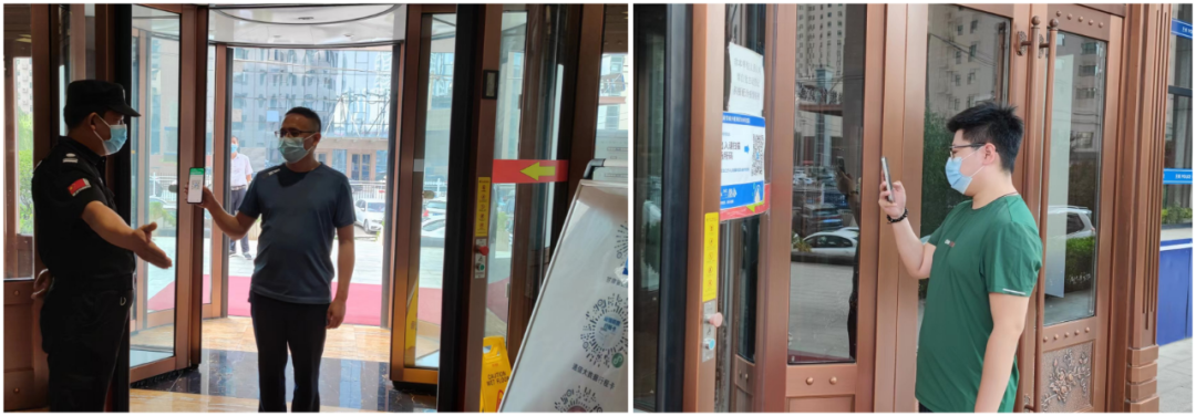 嚴守“入口關(guān)”。在辦公樓入口處,安保人員嚴格做到“一掃三查”,查看職工佩戴口罩,查驗健康碼和行程碼,進行體溫檢測,最大限度地阻斷輸入性疫情風(fēng)險。
