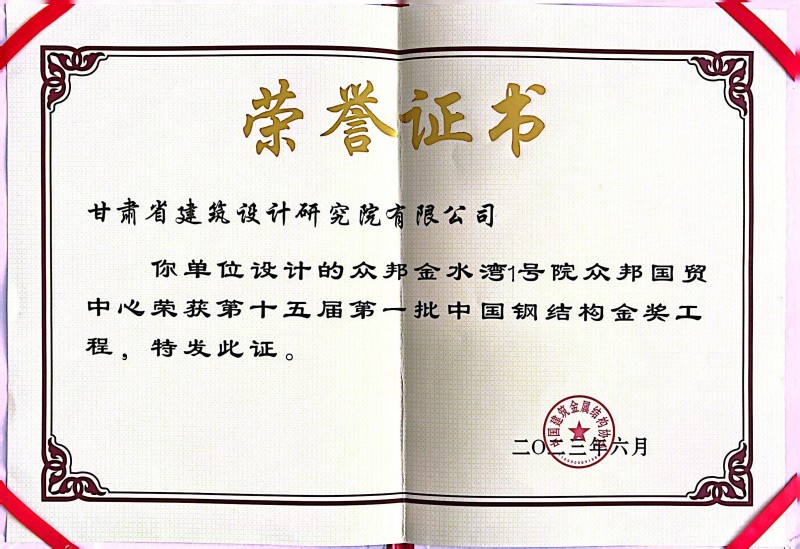 近日,從中國建筑金屬結(jié)構協(xié)會傳來喜訊,由省建筑設計院總建筑師、甘肅省工程勘察設計大師馮志濤領銜團隊設計的“眾邦國貿(mào)中心”榮獲“第十五屆第一批中國鋼結(jié)構金獎工程”榮譽稱號。
