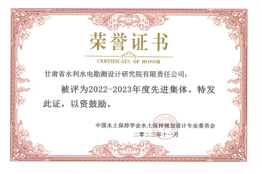 11月5日至7日,中國水土保持學會2023年年會暨學術(shù)研討會在蘭州召開。省水電設(shè)計院榮獲中國水土保持學會2022-2023年度“先進集體”稱號,水保設(shè)計咨詢公司王向明榮獲“先進個人”稱號。1篇論文獲優(yōu)秀論文獎。