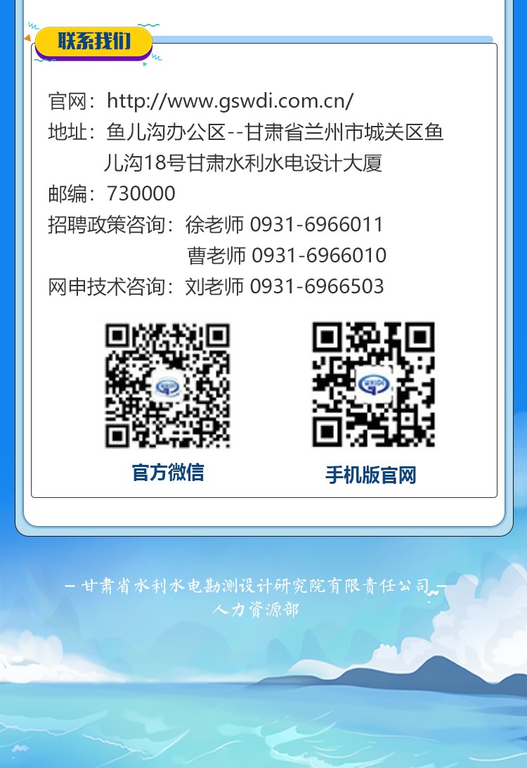 甘肅省水利水電勘測(cè)設(shè)計(jì)研究院有限責(zé)任公司招聘公告