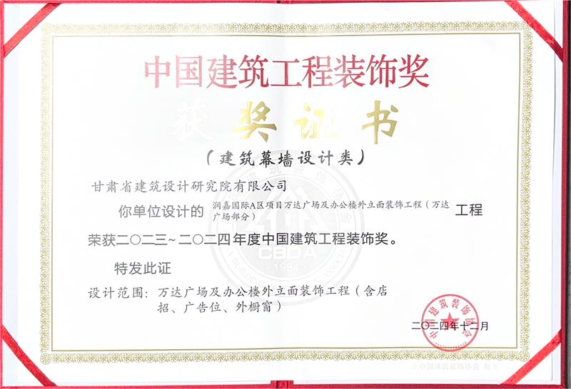 近日,中國建筑裝飾協(xié)會公布了2023-2024年度“中國建筑工程裝飾獎”獲獎名單,省建筑設(shè)計院承擔(dān)設(shè)計的“潤嘉國際A區(qū)項目萬達(dá)廣場及辦公樓外立面裝飾工程(萬達(dá)廣場部分)”榜上有名。